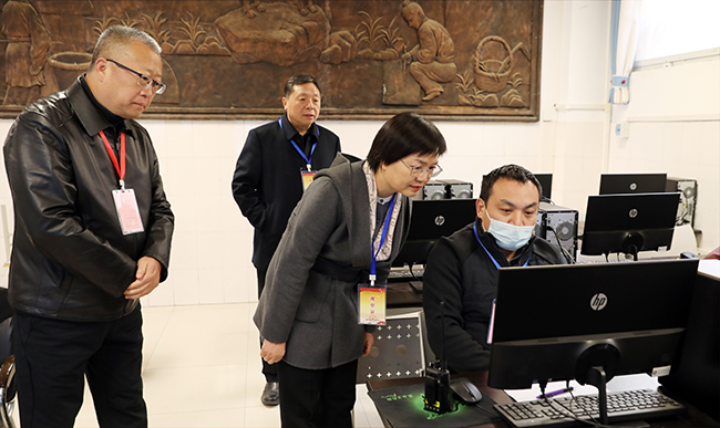 王丽娟一行在2026年艺术类专业省统考(笔试)郑州市第十六初级中学考点视频监控室巡考