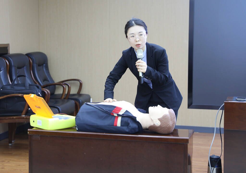 胡金磊首先向与会者普及了紧急救护知识,重点介绍了心肺复苏术(CPR)及自动体外除颤器(AED)的操作方法与相关要点。接着,胡金磊深入剖析了常见疾病、职业疾病、慢性疾病的成因,以及预防要点与改善措施,为大家敲响健康警钟,助力提前防范疾病的侵袭。围绕“四高”(高血压、高血糖、高血脂及高尿酸血症)、心源性猝死、急性心肌梗死(俗称“心梗”)、缺血性脑卒中(俗称“脑梗死”)等高发问题,给出防治建议,提醒大家关注身体指标,养成健康生活习惯。
