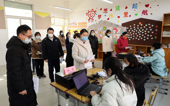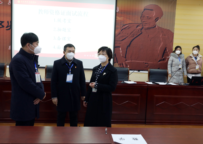1月8日上午,郑州市2022年下半年教师资格考试(面试)举行,郑州市教育局党组书记、局长王丽娟一行来到郑东新区九年制实验学校考点,巡视考试考务工作,亲切慰问考务人员。市教育局党组成员、副局长孟杰陪同巡视。
