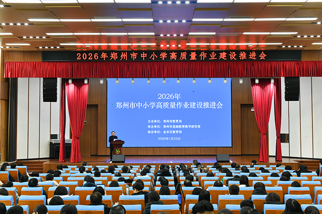 为深入贯彻落实《教育强国建设规划纲要(2024-2035年)》和《教育部办公厅关于进一步加强中小学日常考试管理的通知》精神,聚焦“双减”背景下作业建设与考试管理,推动基础教育质量持续提升,1月22日上午,2026年郑州市中小学高质量作业建设推进会在金水区优胜路小学孟源校区召开。